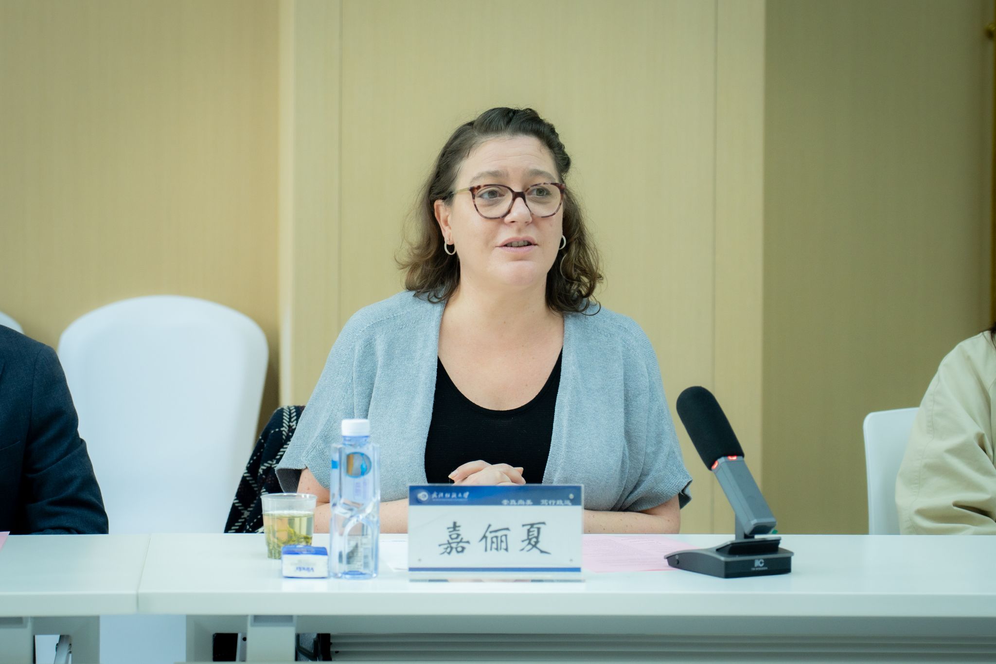 国际处副处长邹满玲对嘉俪夏女士一行的到访表示欢迎。她表示,学校始终坚持开放办学理念,先后与法国多所高校建立了合作关系。面向未来,学校希望在法领馆的支持下,推动与法方科教机构在人才共育、学术平台共建、科研协同创新、中法文化创意融合等四个方面实现新的跨越。