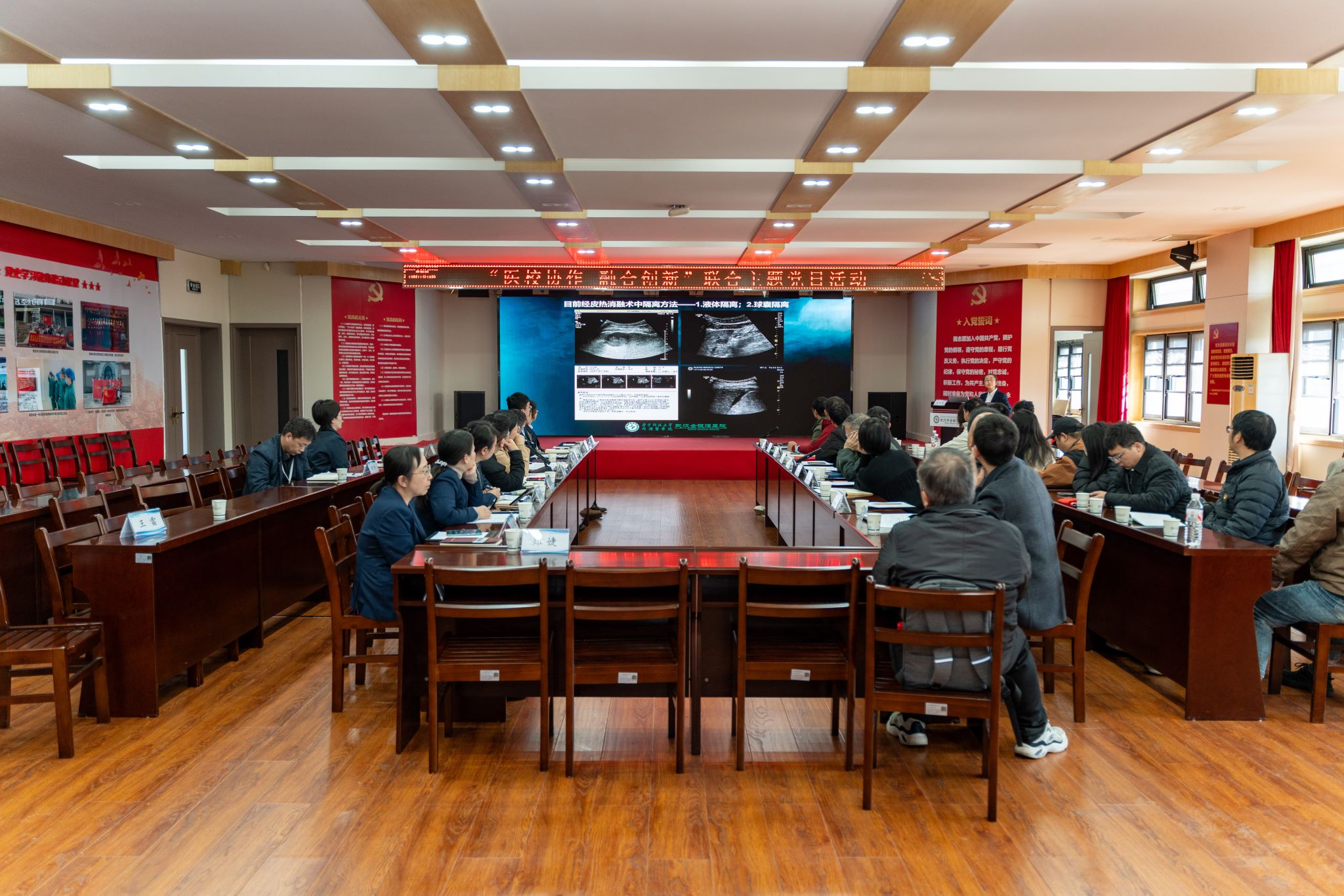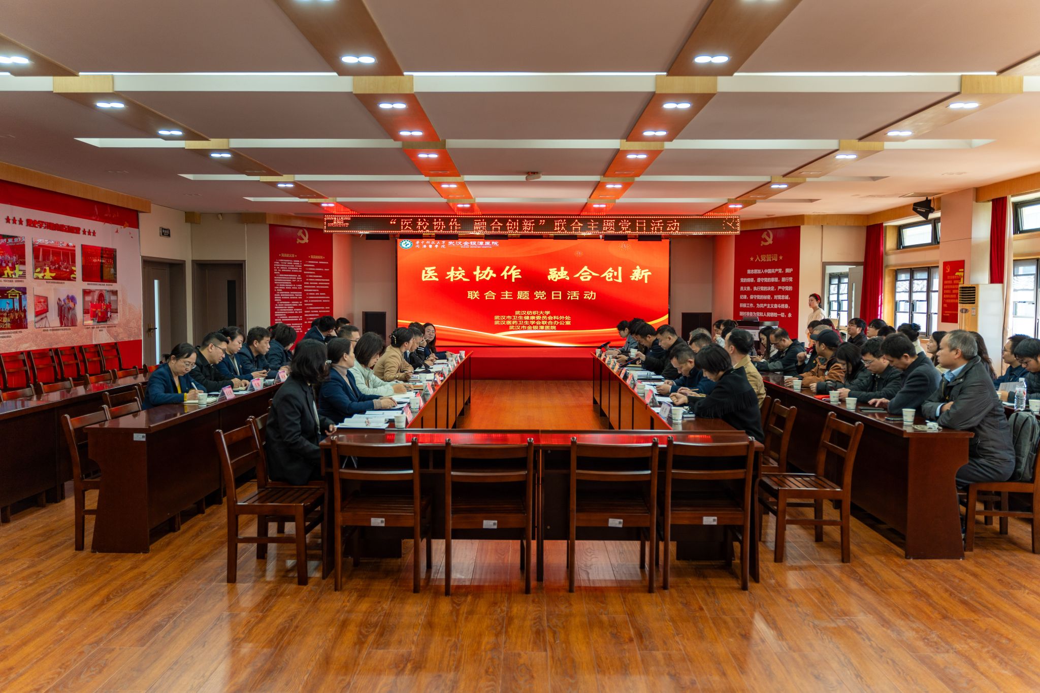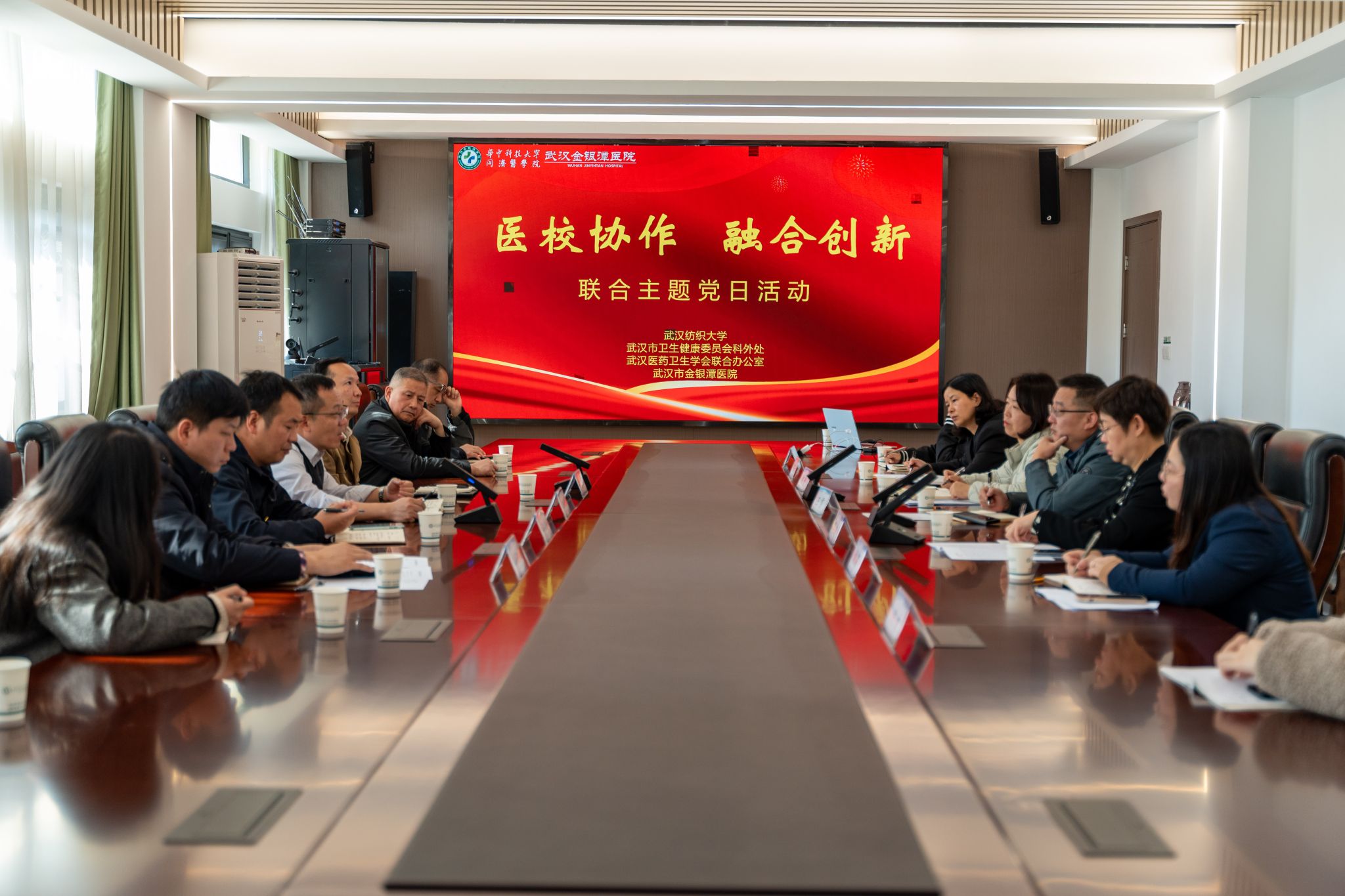 为深入贯彻落实习近平总书记关于科技创新与产业创新深度融合、培育新质生产力的重要指示精神,以党建为纽带推动医教研协同走深走实,11月20日上午,武汉纺织大学科学技术发展院党支部、生物医学工程与健康学院党总支及数学与统计学院党委,与武汉市卫生健康委员会科技外事处党支部、武汉医药卫生学会联合办公室联合支部一起,走进武汉市金银潭医院,开展了一场主题鲜明、内容生动的“医校协作 融合创新”主题党日活动。各方围绕学科交叉与协同创新路径展开深入交流,共同为筑牢人民健康屏障汇聚新合力、注入新动能。